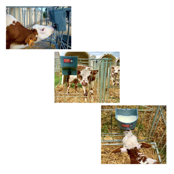 Este fabuloso cubo se intercala con las tetinas instaladas para que puedas llevar varios comederos a los corrales de los terneros y reducir el espacio de almacenamiento.