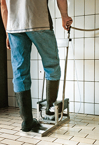 Sistema de lavado de botas para evitar contaminaciones en granja.